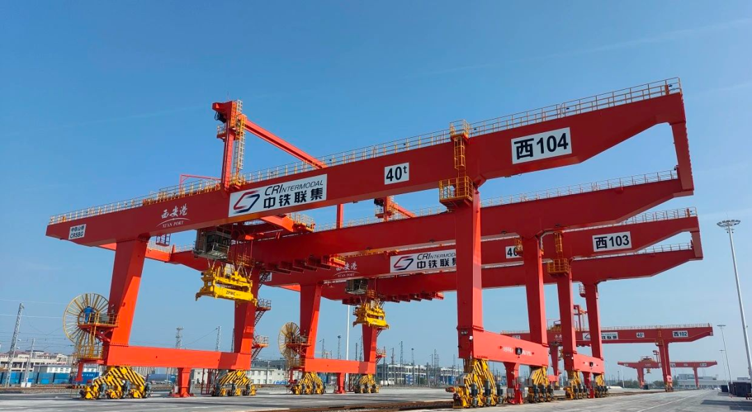 西安鐵路集裝箱中心站是現(xiàn)代化鐵路場站,位于西安市東北郊的國際港務(wù)區(qū)內(nèi),是西安市規(guī)劃的倉儲(chǔ)物流核心區(qū),與鐵路樞紐北環(huán)線新筑車站接軌。據(jù)國鐵集團(tuán)統(tǒng)計(jì),今年1-10月,中歐班列(西安)開行4354自然列,增長32.5%,開行量穩(wěn)居全國第一。從2009年至今,15年間,中鐵山橋?yàn)槲靼茶F路集裝箱中心站提供了多臺(tái)40噸軌道式集裝箱門式起重機(jī),為場站擴(kuò)能發(fā)展、優(yōu)質(zhì)提效做出了突出貢獻(xiàn),助力“一帶一路”中歐班列跑出“加速度”。